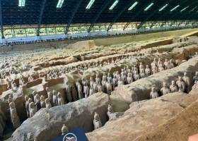 中餐(自理)后,前往参观 1987 年被联合国教科文组织批准列入《世界遗产名录》的世界第八大奇迹——【秦始皇帝陵博物院】(游览时间约 2.5 小时,电瓶车5元/人需自理)即秦始皇兵马俑博物馆(一、二、三号坑),后乘车返回西安。