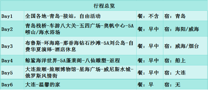宜昌到山东半岛(青岛+威海+大连)旅游行程