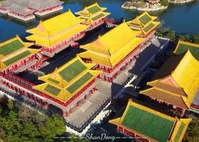 蓬莱阁坐落在山东省蓬莱市城北海边的山崖上,最早创建于公元 1070 年的宋朝。它与滕王阁、黄鹤楼、岳阳楼一起并称中国古代四大名楼。蓬莱阁是一个汉族古建筑群,主要由吕祖殿、三清殿、蓬莱阁、天后宫、弥陀寺等建筑组成。每个建筑又包括许多别具风格的楼、殿、亭、台等。蓬莱阁的一大奇观就是海市蜃楼,每年都能吸引无数的游人。蓬莱阁自古为名人学士雅集之地,阁内各亭、殿、廊、墙之间,楹联、碑文、石表、断碣、琳琅满目,比比皆是,翰墨流芳,为仙阁増色不少。蓬莱阁前常出现“海市蜃楼”奇观,苏东坡的“东方云海空覆空,群仙出没空明中。是一处凝聚着中国古代劳动人民智慧和艺术结晶的古建群。