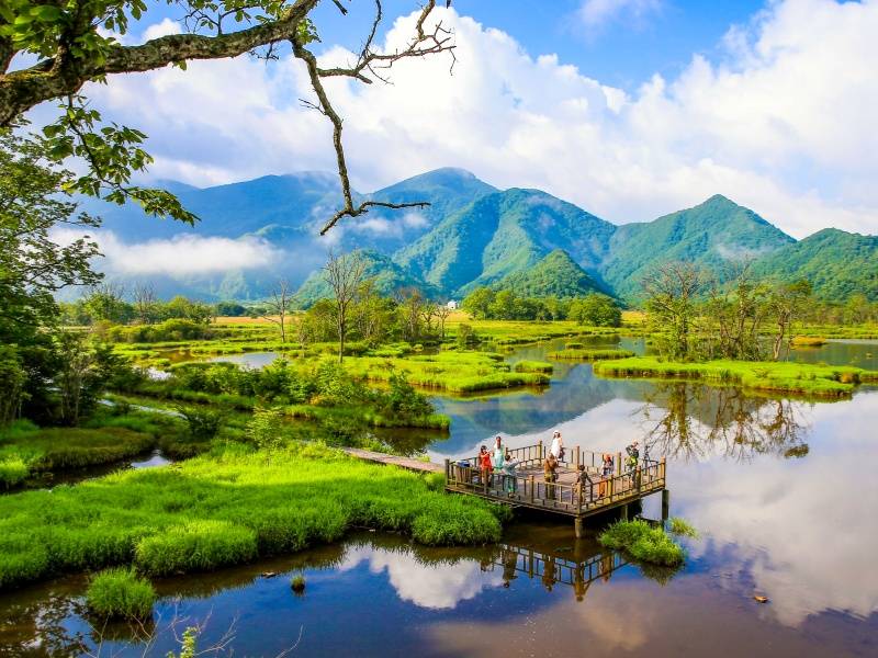 自然风光旖旎,大九湖有画一样的风景有诗一样的情调。在四号湖黄色相间的小火车,穿梭于蓝天、白云、湖水、湿地之间,主要游览景点有亚高山草原、浅水湖泊、落水孔、枯木逢春、天然野生动物园等。