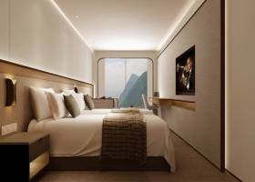空间的新融合新共享,功能的趋向性,综合性,共享性,功能上根据长江游的特点对各项功能的需求有针对的布置内部空间,并根据新游轮的定位优化现有邮轮的房间面积及提高各项功能的舒适度,结合飞机仓、房车、豪华游艇、等空间特点形成全新的风格空间。使用功能和空间高度集成。舒展蝶变的多功能客房可提供单人无需拼房或独立用房的情况下完成完美的自主选择一室多人入住的优化。