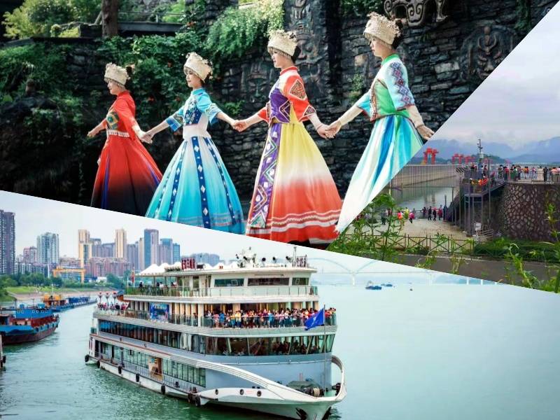 10:10- 14:30:下船游览山上人家(石令牌、 巴王宫、茶盐古道非遗传承一条街、巴王寨,三棵树广场观看演出)。自理中餐后游览龙津溪(龙溪桥、鹊桥、婚嫁楼表演、峡江号子、迎宾表演)。