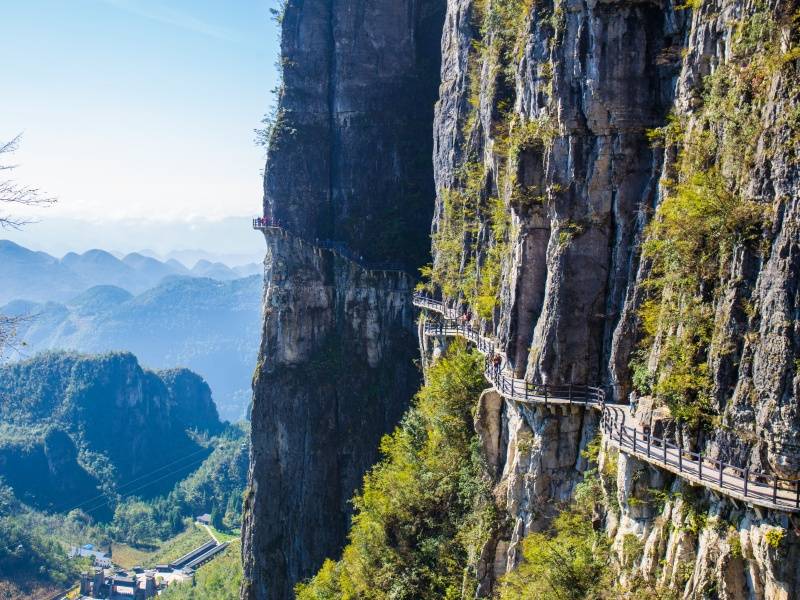 早餐后乘车至恩施大峡谷景区,到达恩施大峡谷后乘坐景区换乘车(费用30元/人)进入景区游览恩施大峡谷第一大景点——【云龙河地缝】(游览时间约1.5小时),地缝位于恩施大峡谷山脚,全长近20公里,最深处近100米,地缝两侧绝壁陡峭,一道道瀑布飞泻直下,水质清澈见底,在正午阳光下呈现出一弯弯彩虹,斑斑阳光洒入缝中,以险、俊、奇、幽的自然景象展现在人们眼前。中餐后乘坐景交或者索道(上山索道105元/人,自愿自理),前往与美国科罗拉多大峡谷相媲美的【七星寨景区】(游览时间约3小时),景区由云龙河地缝、大楼门、中楼门、小楼门及绝壁组成,主要包括地缝、绝壁、奇峰、峡谷等地质景观,是整个清江大断裂景观的精华,总面积23.9平方公里。目前已开放的游步道全长7.5公里,沿途景点有小龙门群峰、龙门石林、一线天、绝壁长廊、轿顶山、鞠躬松、一柱香、天路、母子情深等。