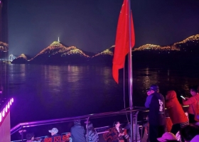 20:00- 21:00:沿途欣赏依山傍水的美丽宜昌独具滨江园林特色的城市风貌: 游轮经夷陵古城城标天然塔; 现代科技与艺术和谐统一的夷陵长江大桥;一峰独高、可俯瞰全城的磨基山; 气势宏伟、威震三江的镇江阁