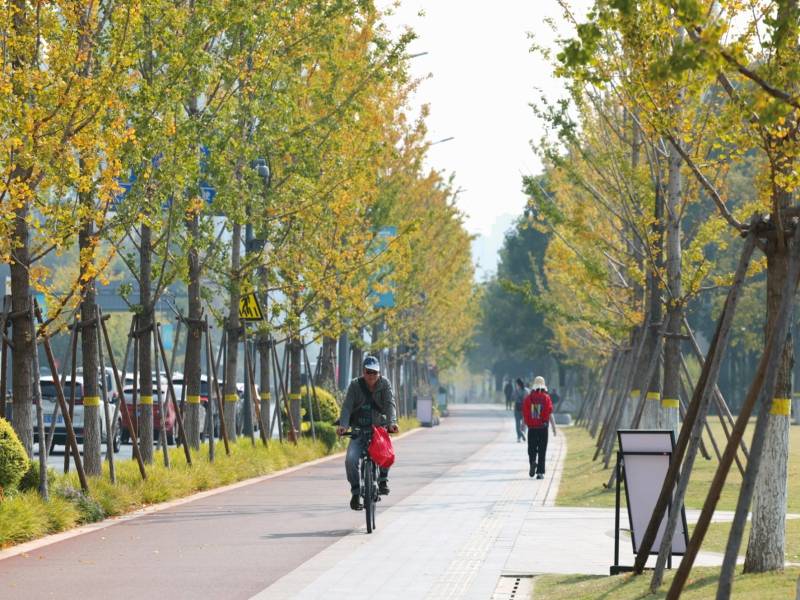 11月6日,立冬节气即将到来,滨江公园里,银杏树树叶开始变黄,阳光穿透树叶,呈现出美丽的金色景色。市林木种苗推广中心高级工程师鲁晓雄说,银杏叶通常先从边缘开始泛黄,随后逐渐变为全黄。研究显示,这一变化过程与花色素苷的积累密切相关。随着天气变化,银杏叶为了适应环境、增强抗冻能力,植物体内的SS成分促进了花色素苷的合成,使得树叶逐渐变黄。可见,气温的变化是银杏叶变黄的关键因素之一,它们启动了“防冻机制”。(记者林潇 摄)