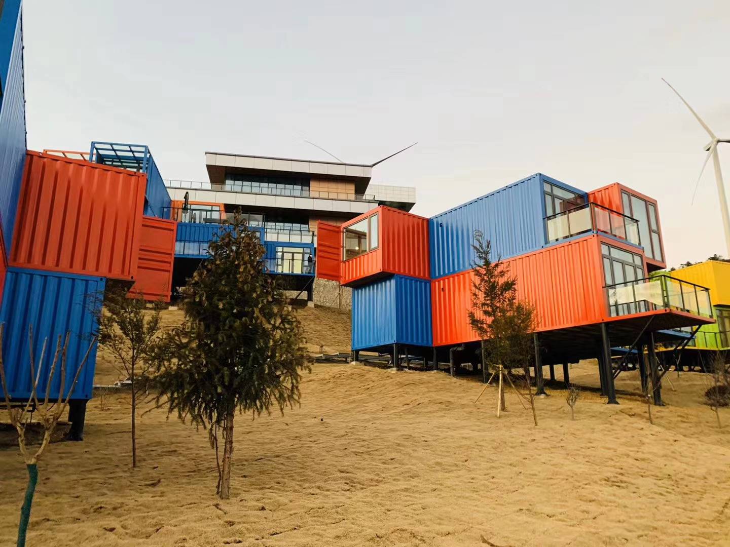 住宿特色:彩色集装箱住宿、木屋别墅住宿、火车酒店住宿。