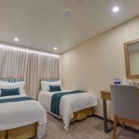 设施齐全:所有房间均带阳台,客房内配备有矿泉水、咖啡包、茶包、客舱内线电话、电视机、迷你冰箱、独立卫生间等设施,为游客提供舒适的居住体验。