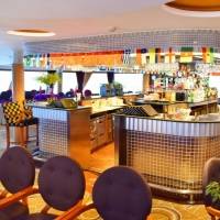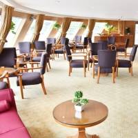 设施设备:拥有气势恢弘的5层高透空旋转大堂、阳光酒吧、阳光甲板、SPA按摩桑拿房、棋牌室等设施,还有音乐演奏厅、图书室等,可满足乘客休闲娱乐需求。餐饮以西式自助餐为主,“美式”中餐为辅,食材新鲜,部分来自海外。