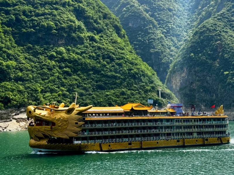 外观设计:以中国龙为主题,外形似一条出水蛟龙,独特的龙舟设计使其在长江众多游轮中极具辨识度。