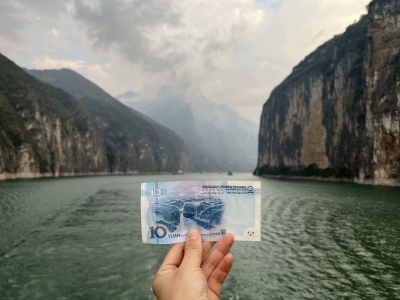 瞿塘峡印在10元人民币的背面,正是长江三峡的西大门,它在巍峨壮丽的白帝城下,是出入四川盆地的门户,如此雄伟壮观,难怪被选中印在钱币上了。
