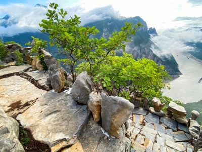 飞云台的起名,有两个原因。一则,此处随时可见云飞云卷,是感受行云流水的好地方;二则,与巫山神女有关。传说巫山神女及其姐妹们在神女溪中梳洗嬉闹之后,常与飞云相伴来这里跳仙女之舞,最终成为一处奇景,故名为“飞云台”。