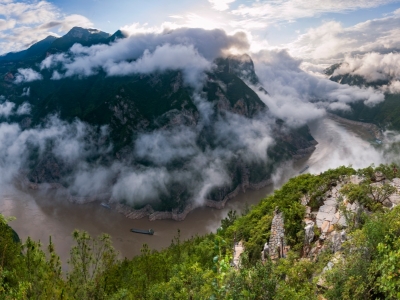 瑶台观景,最适合观赏巫峡北岸群峰。站在瑶台上远眺,可以看见群山逶迤,万峰宏伟,一江透绿,层林苍翠。值得一提的是,从瑶台远观巫峡北岸,最大的特点就是能够同时完整地看到朝云峰和神女峰。
