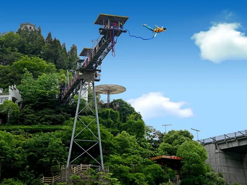 二、极限运动:三峡蹦极、飞天滑索、三峡攀岩、峡谷秋千、大摆锤、龙舟竞技等。